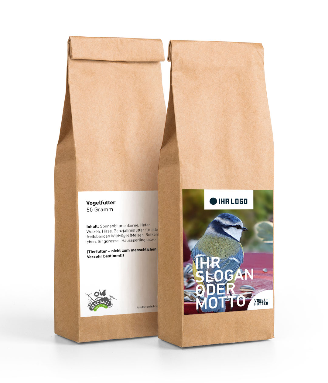 - Vogelfutter 50 Gramm als Werbegeschenk