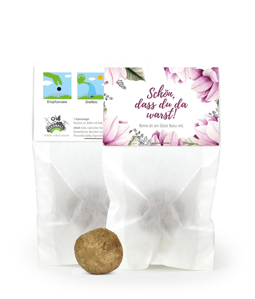Unsere handgeformten Seedballs (auch als Seedbombs bekannt) bestehen aus einer nachhaltigen Samenmischung, torffreier Erde und natürlichem Ton. Die steinharten Kugeln können über Mauern und Hindernisse hinweg auf Brachflächen, Industrieanlagen und sonstige graue Orte geworfen werden.